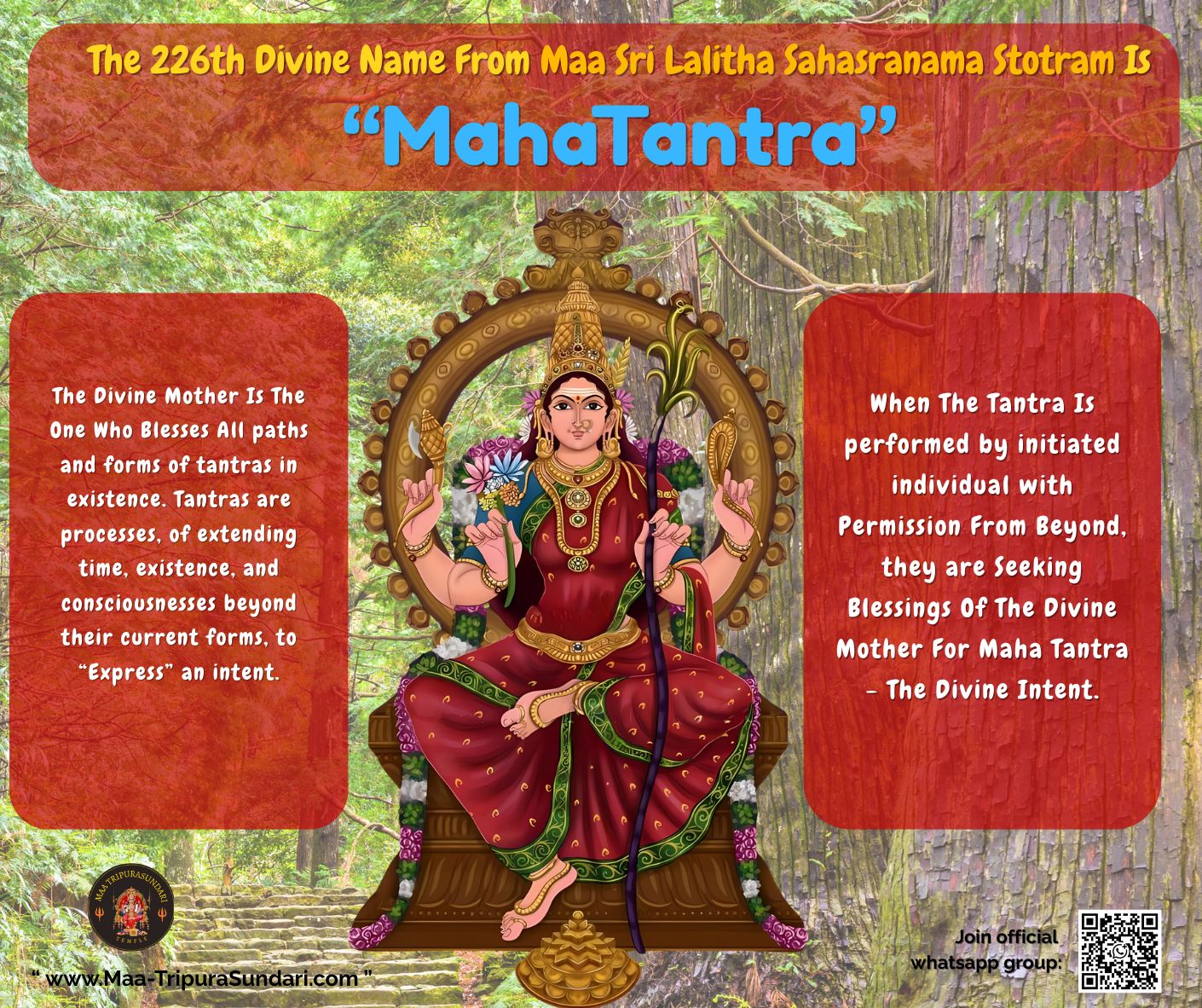 The 226th Divine Name From Maa Sri Lalitha Sahasranama Stotram Is “MahaTantra” When The Tantra Is performed by initiated individual with Permission From Beyond, they
