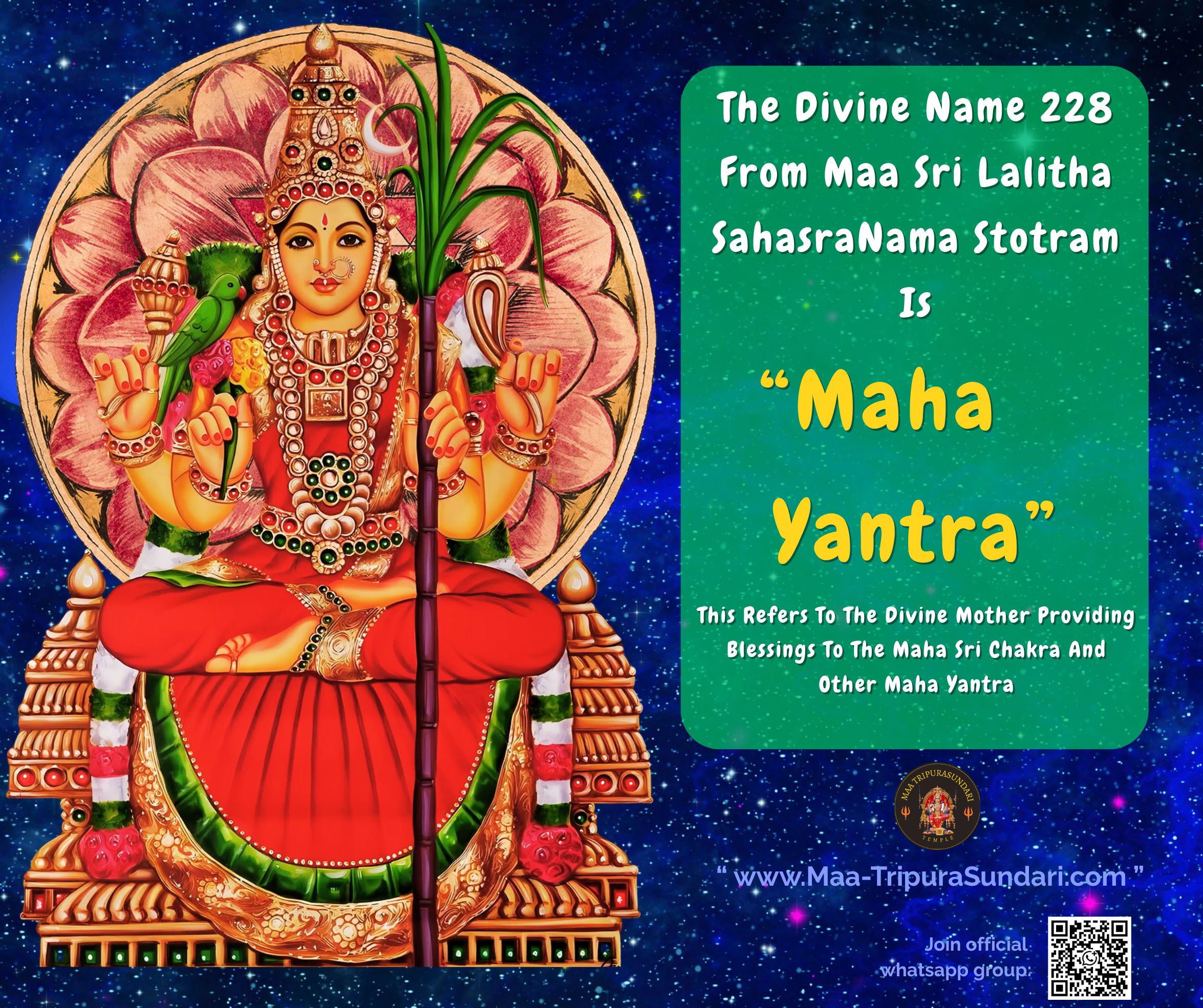 The Divine Name 228 From Maa Sri Lalitha SahasraNama Stotram Is “Maha Yantra” This Refers To The Divine Mother Providing Blessings To The Maha Sri