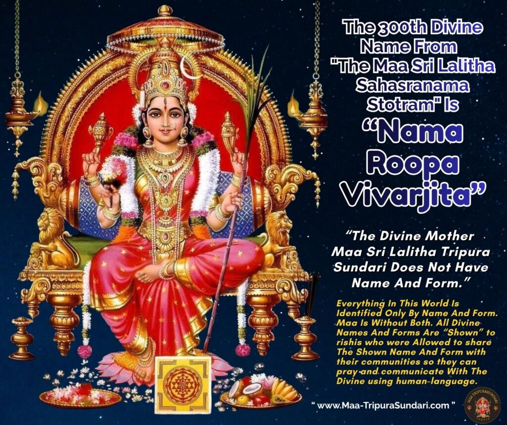 The 300th Divine Name From “The Maa Sri Lalitha Sahasranama Stotram” Is “Nama Roopa Vivarjita”